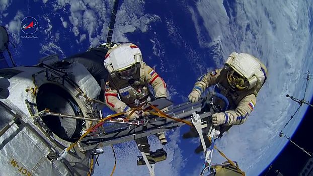Erstmals mit Orlan-MKS Raumanzügen. Tomsk TPU-120, Tanjuscha JuSGU-1, Tanjuscha JuSGU-2, TNS-0 #2 und TS-530 Zerkalo ausgesetzt. |