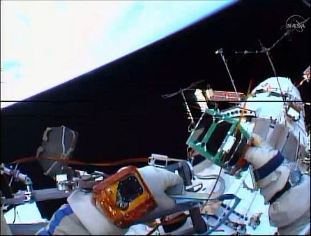 Schon in der nächsten Orlan-EVA nur 10 Tage später gab es keine hörbaren Interferenzen vom AM-Flugfunk mehr. In anderen Orlan-EVA's aber dann doch wieder. Wie es scheint wird das Setup bei jeder EVA erneut geändert. |
