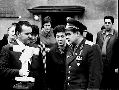 ![]() Karl-Heinz Neumann mit Kosmonaut Andrijan Nikolajew 1967 |