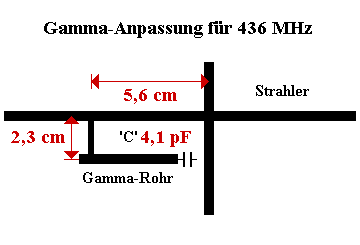 Gamma-Anpassung für einelementige Strahler. Da die Yagi einen Flußpunktwiderstand von 50